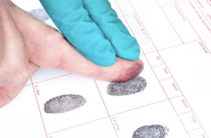 An impression or mark made on a surface by a person's fingertip, often used for identifying individuals from the unique pattern of lines.